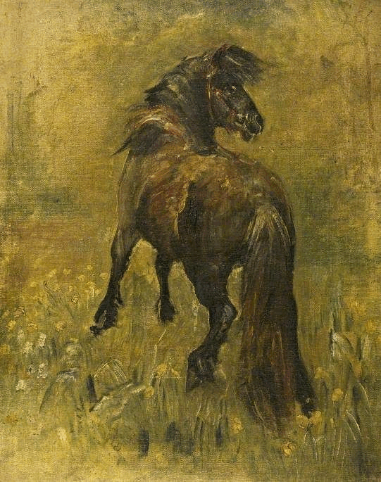 There is possible similarity between 1922 photograph and and Oil sketch of a pony.