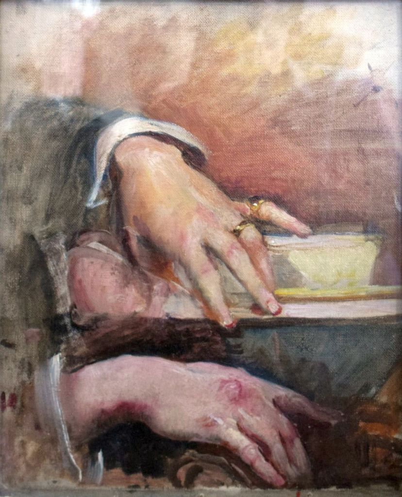A photograph from 1922 shows Annie wearing rings on the outer fingers of her left hand, so this could possibly be a ‘hands self-portrait’.
