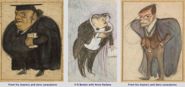 Alan was sent to Charterhouse and then to Trinity College, Cambridge. Throughout his school days he drew, sending illustrated letters home from his prep-school and drawing caricatures of the masters at Charterhouse and dons at Trinity. He produced figures with a waspish wit, in a similar style to his contemporary Max Beerbohm, employing humour of observation rather than satire.