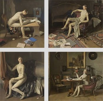 He did bring attention to himself however with his series of lay figure paintings. He painted one initially in 1927 and its success brought him to follow it with more. Amongst these he produced a series of four between 1928 and 1929: Composing, Posing, Reposing, and Decomposing. The idea was novel. It captured attention. P G Konody reviewing them in The Observer asserted: