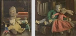 All four were exhibited in the Oldham Gallery in 1930. Decomposing was bought by the Chantrey Bequest in 1931 for the Tate Gallery. Two others went to Gerald Kelly. The series allowed Beeton to execute his skill in reproducing fabric and furniture. The sets for the painting were put together in the London house and Beeton went back to them time and time again, altering tiny details, moving the fold of a piece of fabric, shifting some small object to change emphasis. The minutiae of the interiors were illustrative of his painstaking concentration on detail. The ultimate example of this is his later ‘toy’ canvasses where the heightened detail is truly remarkable. The inanimate of course had the advantage of being both static and endlessly available.
