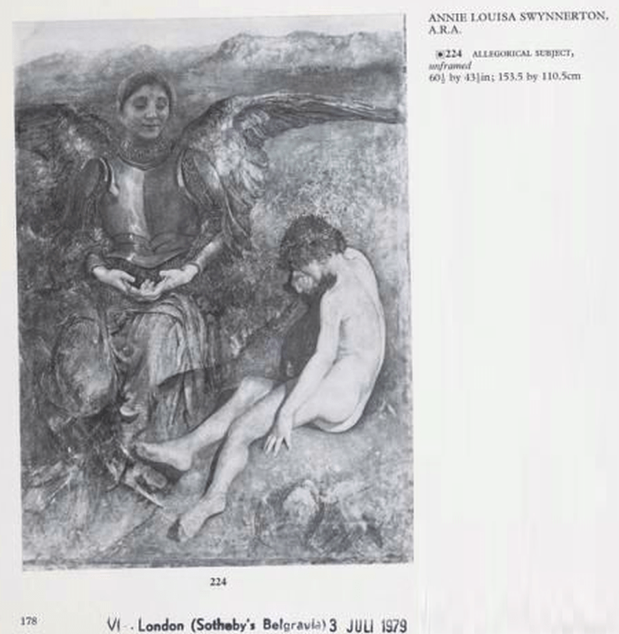 - Signature/date/other text: “Allegorical subject/by/Annie L. Swynnerton ARA/found in her studio in Rome/and sent to London in 1936” on the reverse.
