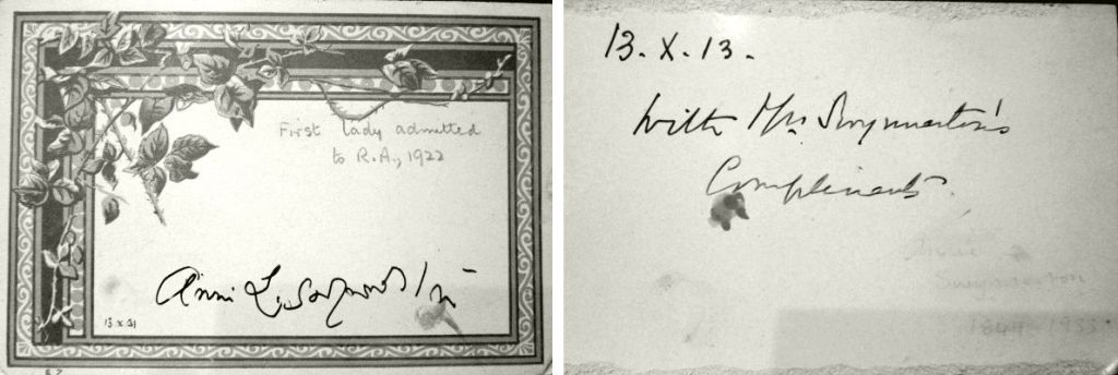 The text reads: “Annie L. Swynnerton / 13.X.13. With the Swynnerton’s Compliments.“