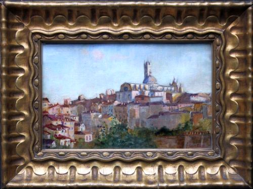 MARCH – Isabel and Francis Dodd have a joint exhibition in Manchester. Isabel’s work highly praised: “Miss S. Isabel Dacre’s Italian landscapes, which form the larger part of an exhibition that opens today [the others being watercolours by Francis Dodd] in Mr. Charles Jackson’s gallery in Police Street, Manchester, have a distinguished place of their own in comtemporary English paintings … which no other living British artist’s work quite possesses” (The Manchester Guardian, 28 Mar 1913). Isabel’s Siena is mentioned in the article. More detail HERE.