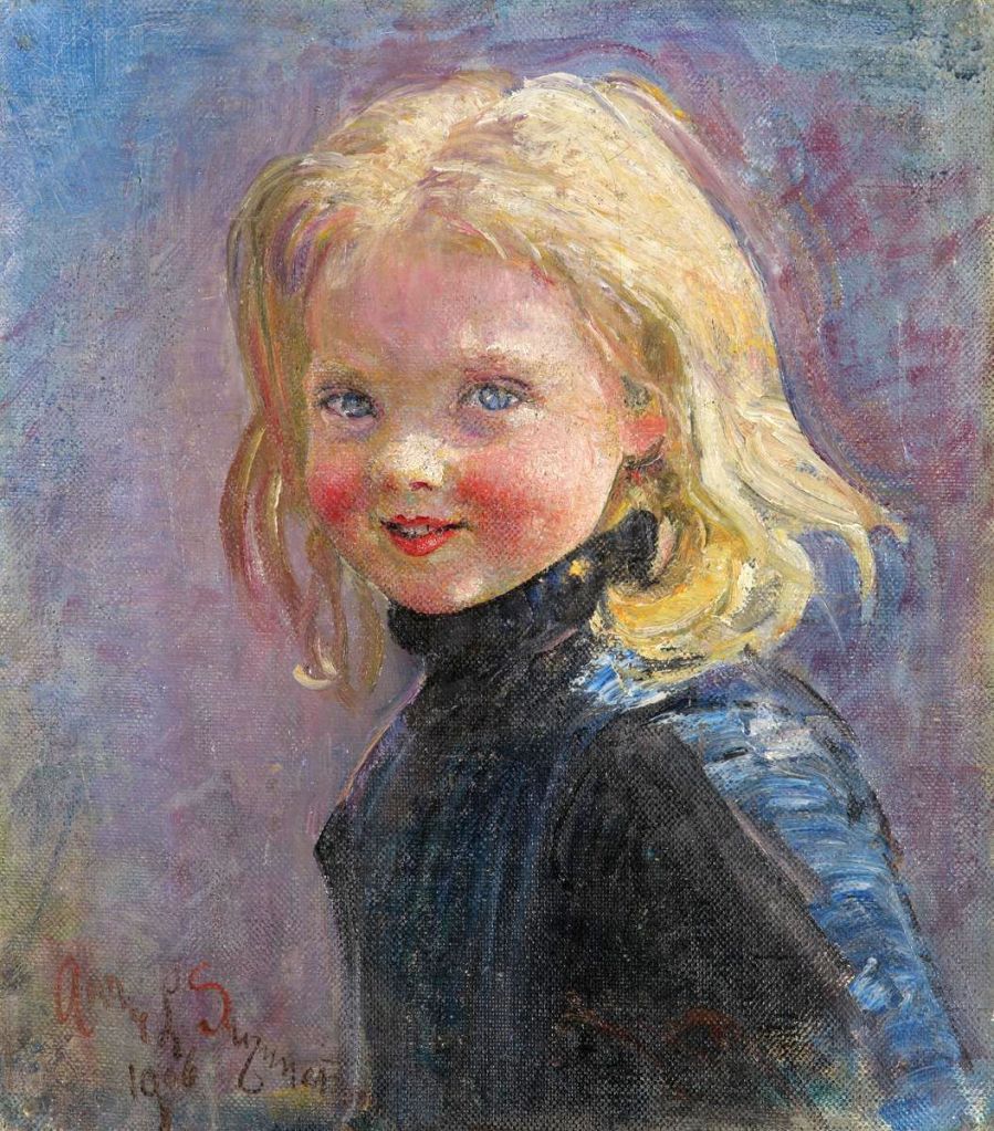 - 2008 – Auctioned Mallham’s, Cheltenham, 21 Aug 2008, “ANNIE LOUISE SWYNNERTON … Portrait of a young girl with blonde hair wearing a polo neck jumper, signed and dated ‘Annie L Swynnerton 1906’ bas gauche [bottom left], oil on canvas, 13¼” x 11¾ [337 x 298 mm],” sold.