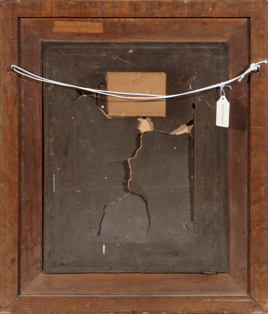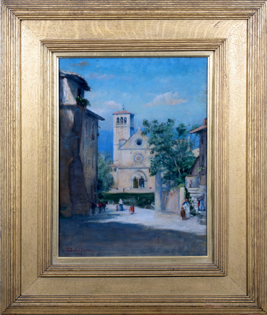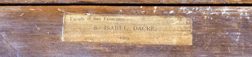 Label on back has the text “Facade of San Francesco / S. ISABEL DACRE, / 1903,” but painting is clearly dated 1902 by Isabel on the front.
