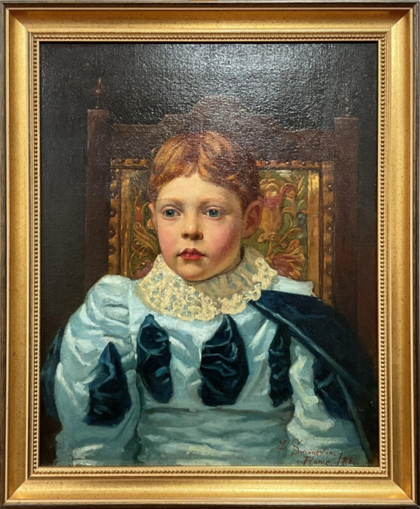 Frederick Swynnerton was born in the Isle of Man in ?1860. He was a brother of Joseph Swynnerton, Annie’s husband. His earlier life appears to have based in the Isle of Man, where he had a keen interest in archaeological matters, something he continued with throughout his life wherever he lived. Professionally he was a dedicated artist, studying in Rome and Paris, and in the late 1880s moving to India to make a name as a portrait artist amongst the high society of the Raj. He expressed a love of Rome and would have probably returned there in his latter years with his Anglo-Italian wife – Louisa Angelo, whom married in 1892 – but sadly died in 1918, aged about 60 [different sources give different birth dates], in Bombay while on a trip to Rome.