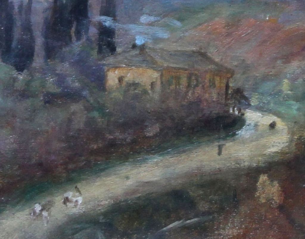 - 2011 onwards – With vendor Richard Taylor Fine Art, “Tuscan Village / Signed on the right. / Provenance. Manchester Gallery label and number verso. / Harnell and Son London Art Dealers.”