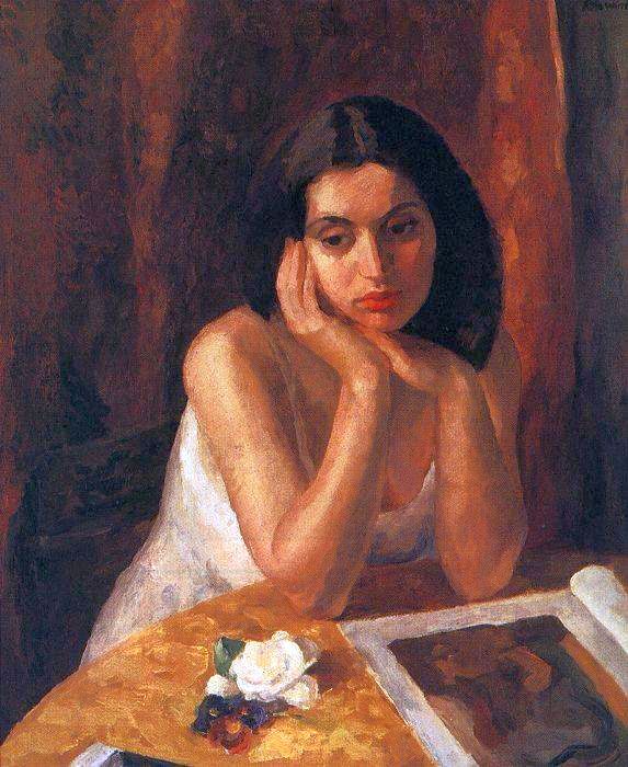 I think it is Mabel’s expressive use of colour and light/dark which particularly appeals to my eye. The first work I happened to come across was on Carol L. Jackson’s site in the early days of the web. (One of the first online art galleries, but which ceased to be updated in 2006. It is archived at www.sai.msu.su.) The painting she exhibited was Italian Girl (called ‘The Italian Model‘ on Carol’s site).