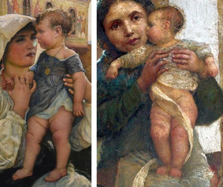 There are obvious similarities to Annie’s Italian Mother and Child – the background building and the stance of the child: