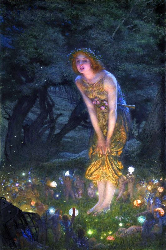 THE GLOW WORM is an image often attributed to Annie on web pages, but bears nothing of her style. It does resemble the style of uncle and nephew artists Arthur (1832-1915) and Edward Robert Hughes (1851-1914), particularly the latter.