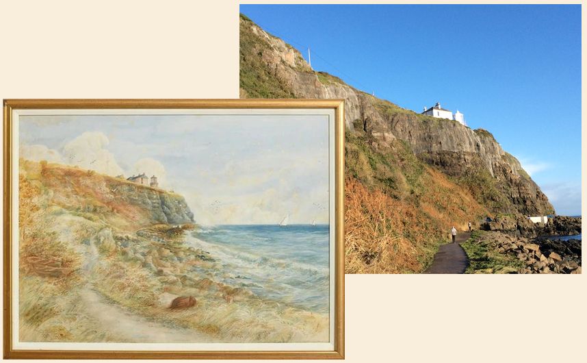 The owner visited the location identified – Blackhead Lighthouse, County Antrim – and took the photo below, showing the scene virtually unchanged.