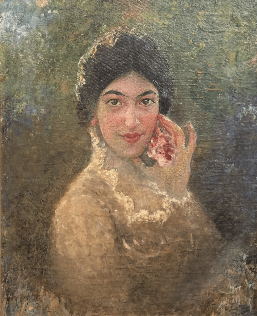There is obvious similarity between the 1932* photograph and the auctioned Portrait of a lady holding a flower.