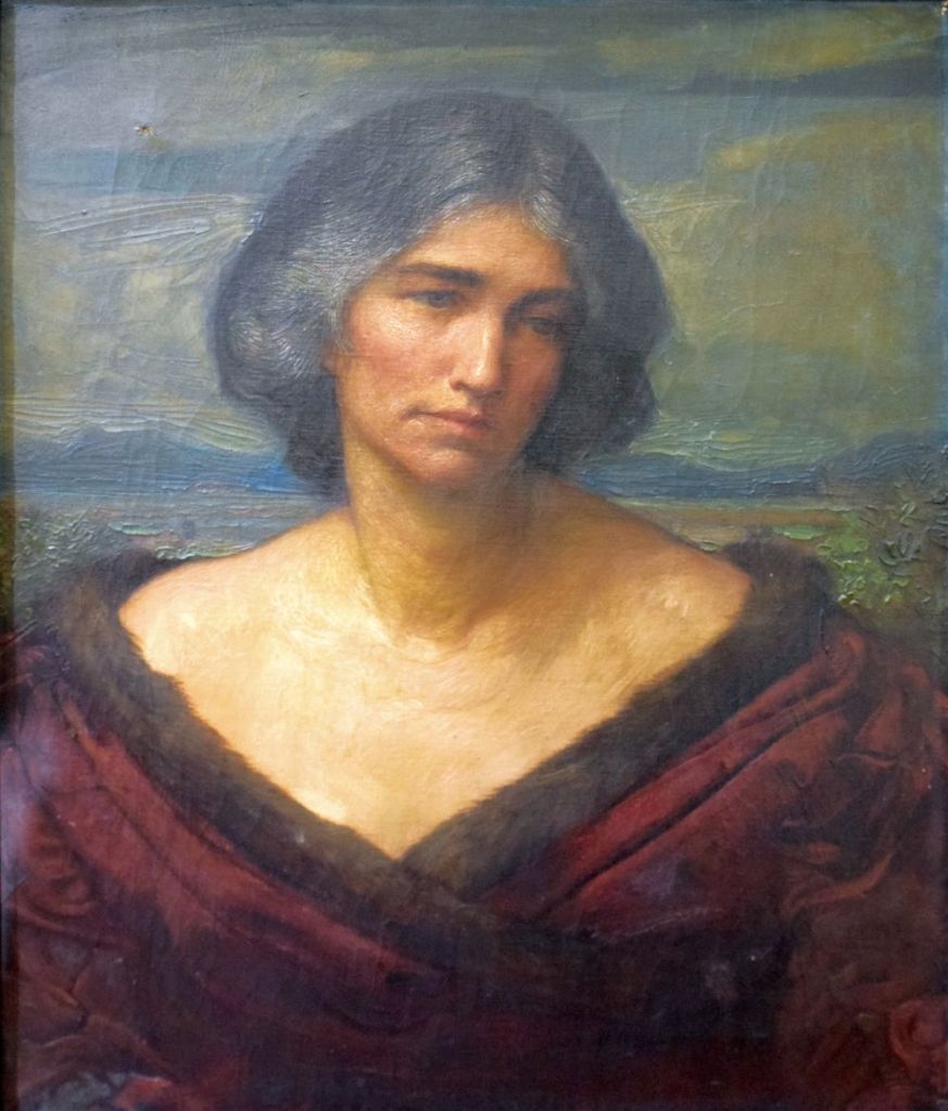 - Description: “[bust] portrait of a lady wearing a fur trimmed maroon dress and with distant hills beyond” (Mallham’s, 2019).