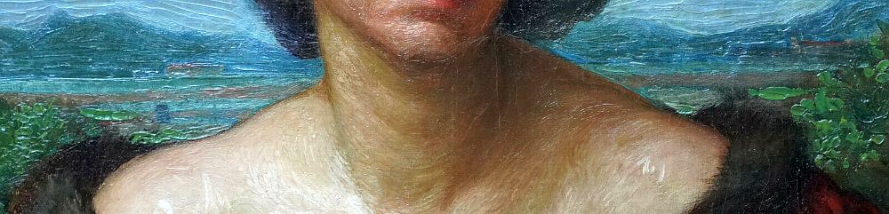 - Title(s): Portrait of a lady wearing a fur-trimmed garment (this web site); Portrait of a lady wearing a fur trimmed maroon dress and with distant hills beyond (Mallham’s, 2019).