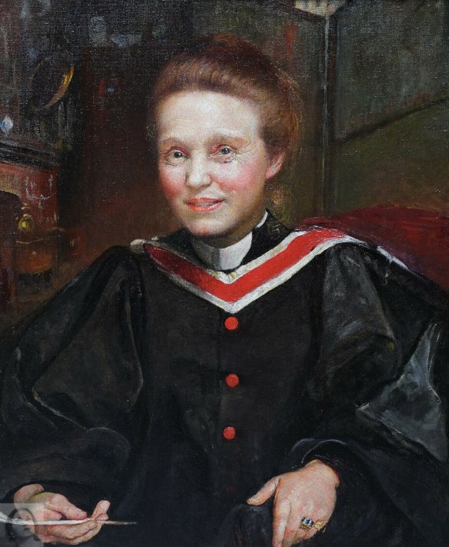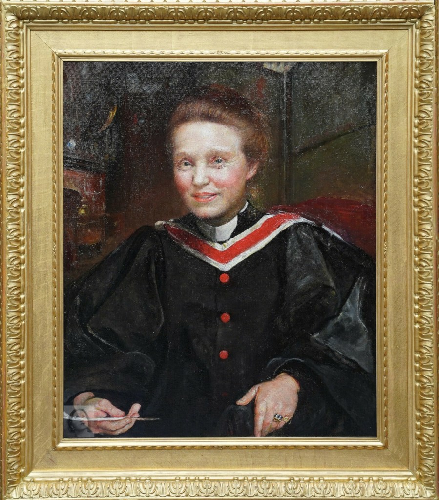 Presumed to be “[Lot] 82 PORTRAIT OF DAME MILLICENT FAWCETT, in academical gown 29 in. by 24 in.” listed in Annie’s posthumous studio sale catalogue.