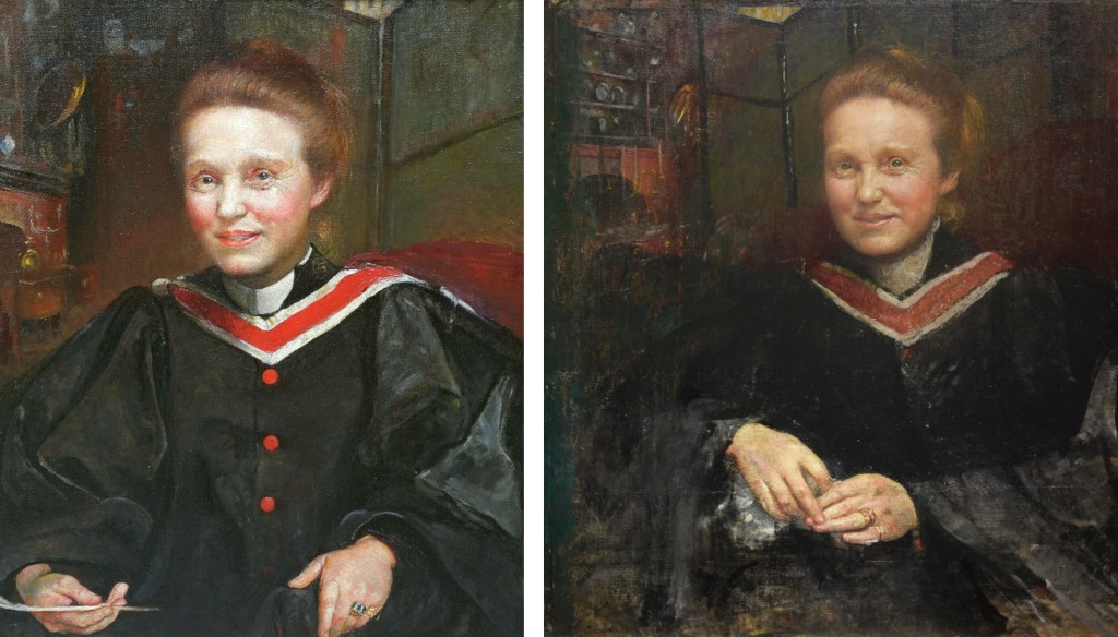 - History: c. 1910 (ref.); assumed to be same work (same dimensions) as that listed in Annie’s posthumous studio sale catalogue, “82 PORTRAIT OF DAME MILLICENT FAWCETT, in academical gown 29 in. by 24 in”; preparatory oil painting c. 1910, sold at Christie’s London in 1959 (know from a black-and-white photograph held in National Portrait Gallery archive); Sotheby’s 1970; Christie’s 1973; with Richard Taylor Fine Art Aug 2021, sold shortly afterwards (noted no longer listed at Richard Taylor 5 Sep) to Palace of Westminster.