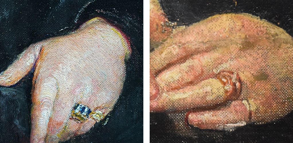 One of two portraits Annie is known to have painted of Dame Millicent. The screen in the background is in different positions in the two versions, and the sitter also appears to be wearing different rings (Westminster left, Tate right).