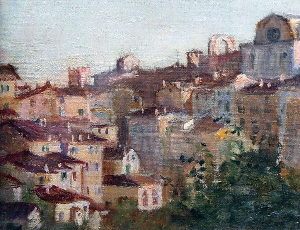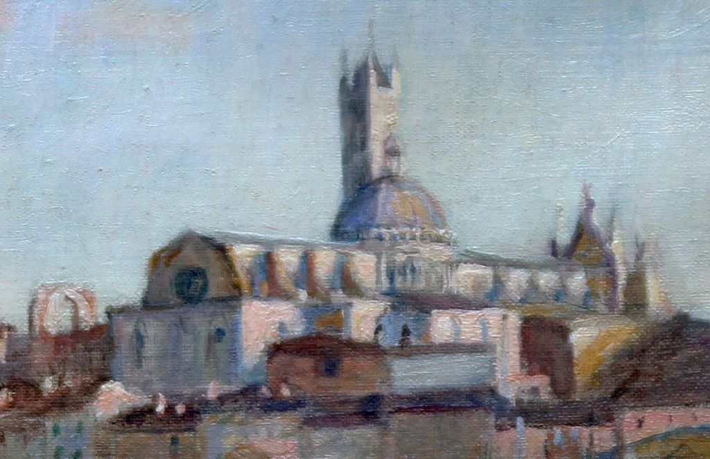 The view is of the Duomo di Siena (Siena Cathederal) from the NW. Both Annie and Isabel painted similar scenes. Annie’s version is undated, but the similarity between suggests they are contemporary.