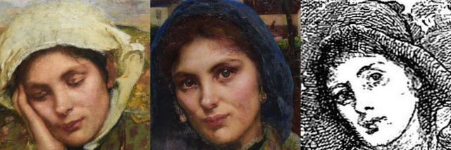 The model used may have been the same woman as in The Convalescent and Manx Maid. All three works are dated 1887. (Thanks to Alastair Swinnerton for the observation.)