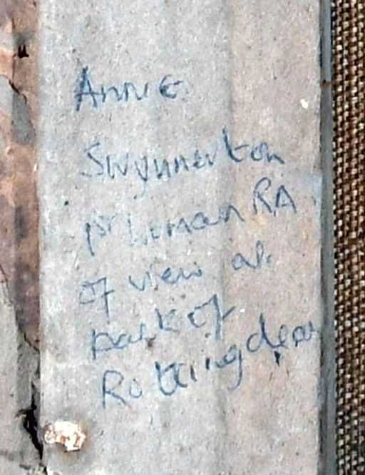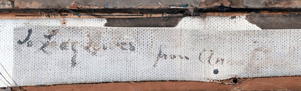 - Signature/date/other text: “Indistinctly signed and inscribed To Lady L**rs from An S****ton (to stretcher)” (Woolley and Wallace, Dec 2022).